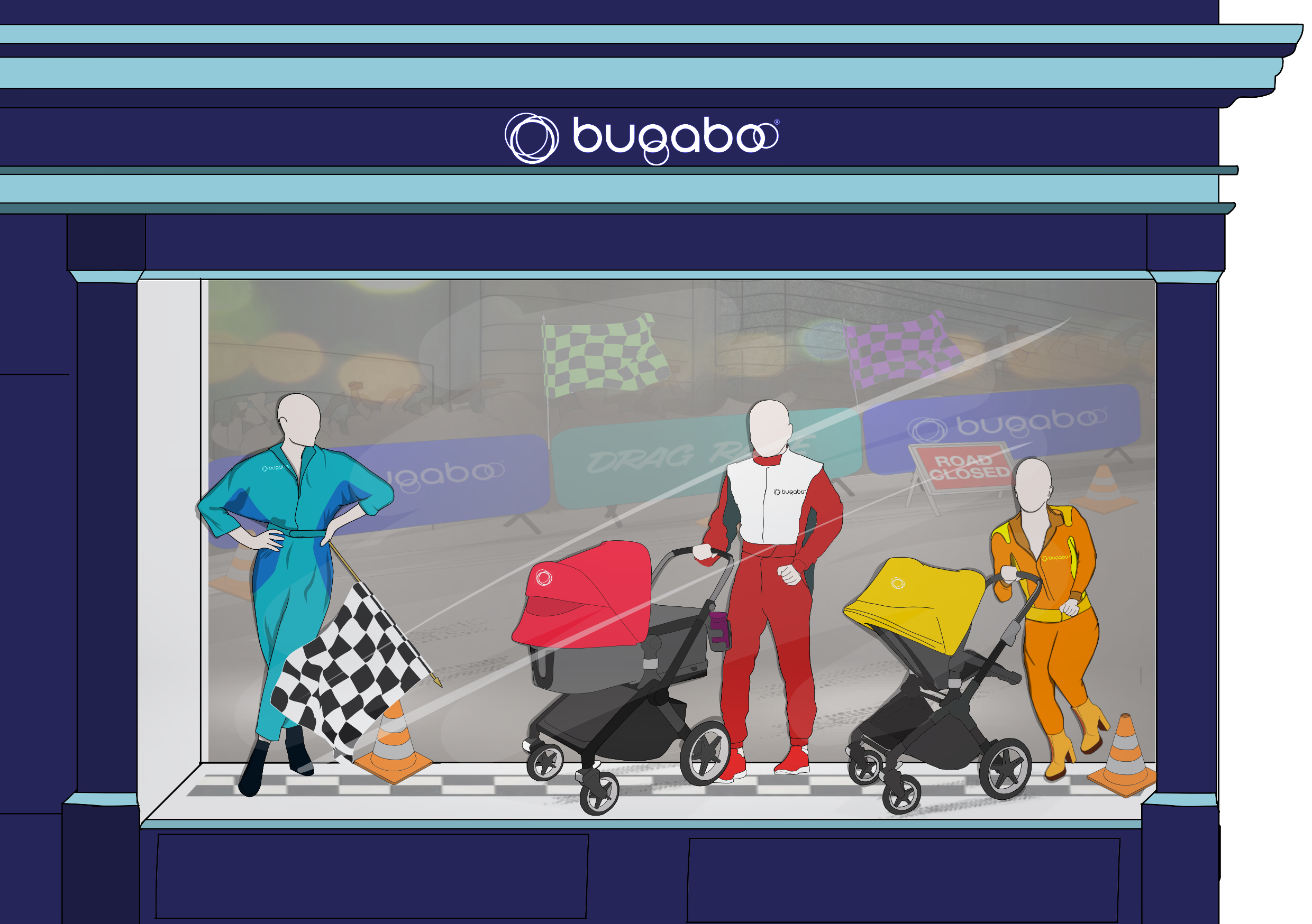 These illustrations feature bold, vibrant colours and distinct designs that capture the spirit of Bugaboo's products and its mission to empower parents to live more active lives with their children. Each illustration is tailored to the specific needs of the Bugaboo adverting and marketing campaigns commissioned by The Fitting Room. These illustrations feature activities that bring families together. The illustrations are stylised in a way that resonates with the Bugaboo brand and its core values of adventure, exploration, and family. The illustrations are designed to capture the idea that Bugaboo strollers are a source of excitement, discovery and possibility.The illustrations are designed to be fun and lighthearted, portraying the sense of adventure that users may experience when pushing their Bugaboo stroller.
